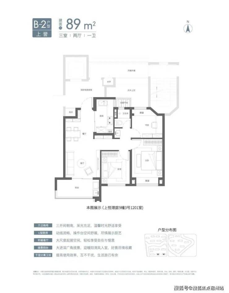 建面约105㎡3房2卫有两种风格(宽厅、竖厅),尤其是宽厅户型,设计格外惊艳。