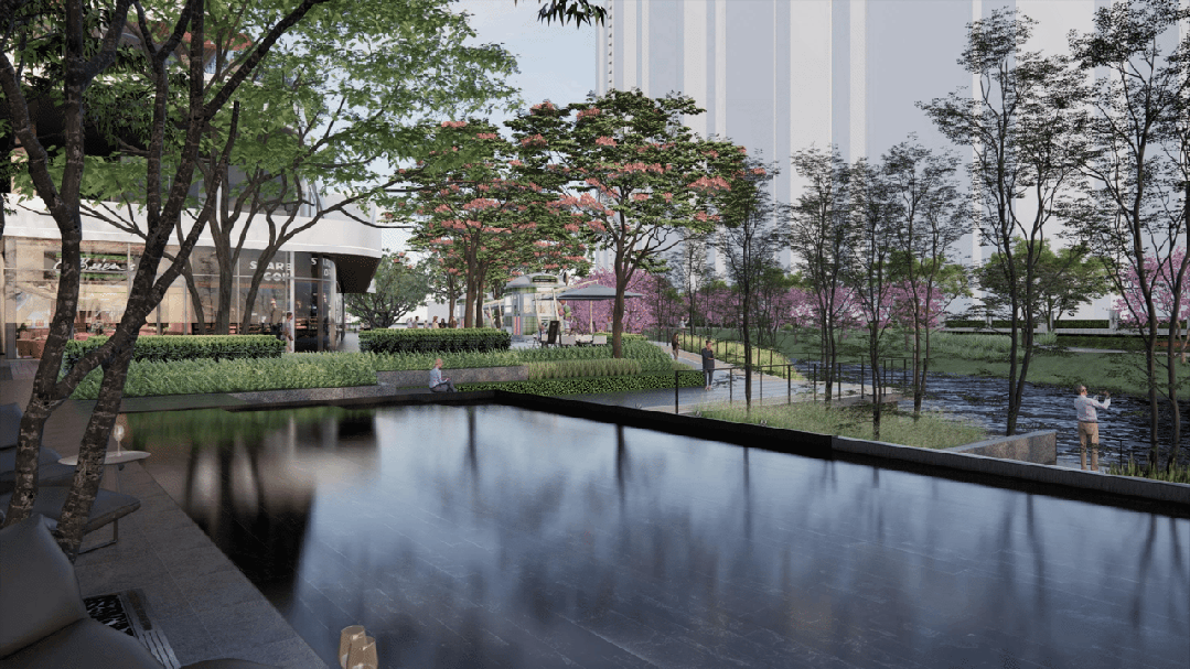 自带约4万方滨水商业:以新加坡vivo city为设计蓝本,采用开放式布局,增加了外摆和互动空间,类似珠江新城天德广场的猎人坊