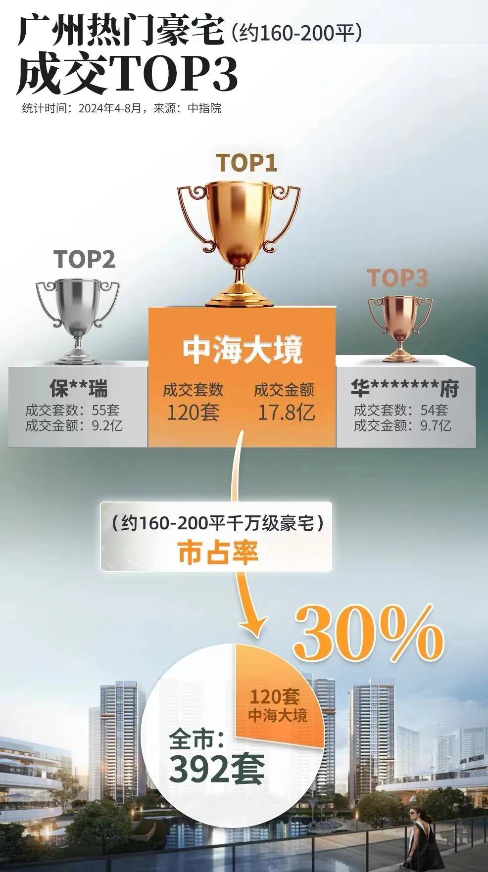 今年4月以来,项目主打约160-200平户型,狂成交金额、销量和面积均是NO.1,斩获广州豪宅“三冠王”。
