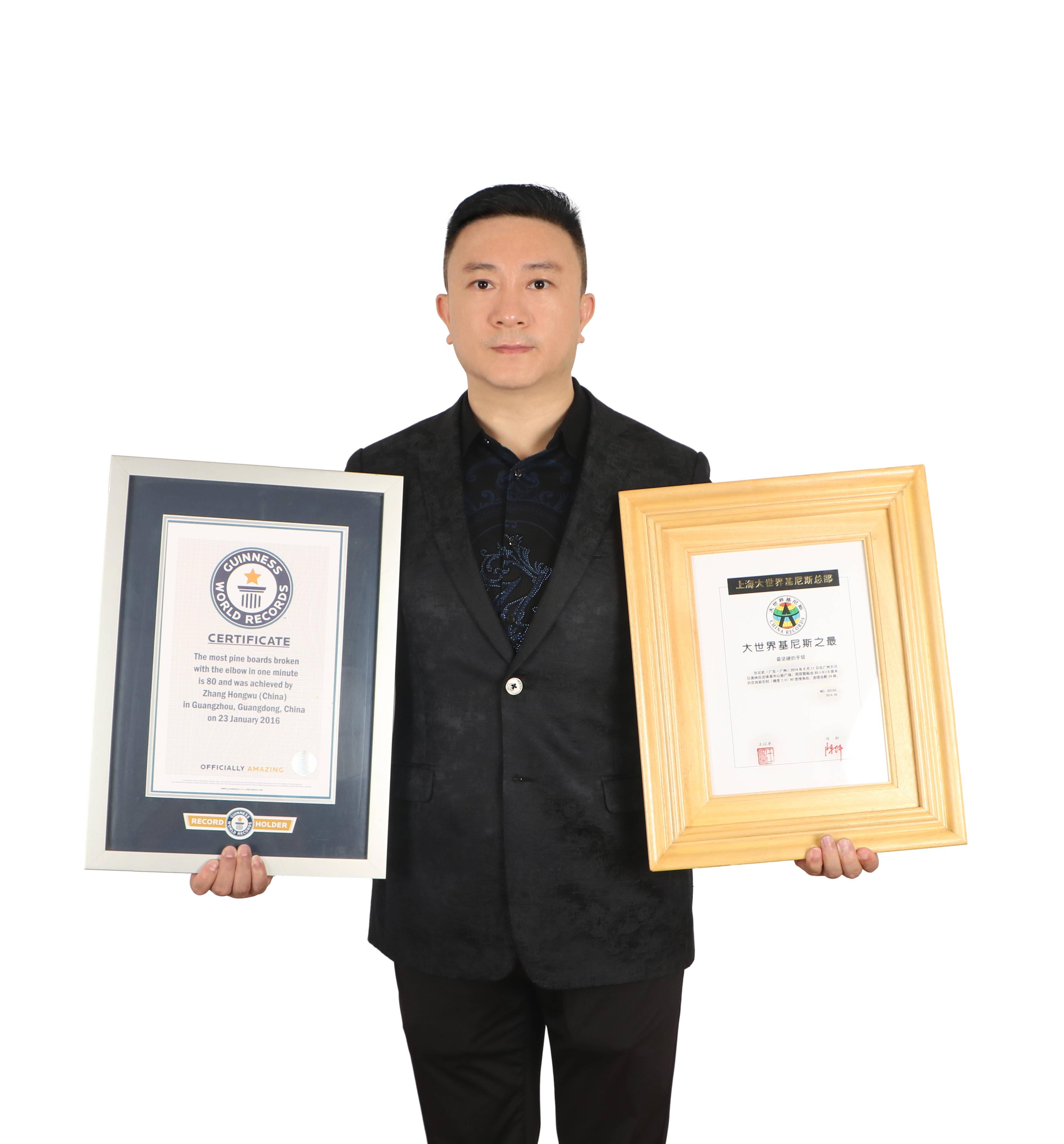 张宏武的成名绝技无疑是他那令人惊叹的铁臂功。2014年,在广州天河奥林匹克体育中心广场,他仅用70秒,就用双臂棱角部击断24根9×9×85厘米的天然花岗岩(硬度达7.0),一举拿下中国铁臂王称号;同年8月31日,他再破纪录,2分27秒内击断48根同样规格的花岗岩,成功打破吉尼斯世界纪录,成为世界铁臂王。此后,他还在2016年,以肘部1分钟内击破80块松木板的成绩,再次刷新吉尼斯纪录。这双铁臂,成了世界公认的坚硬的手臂。