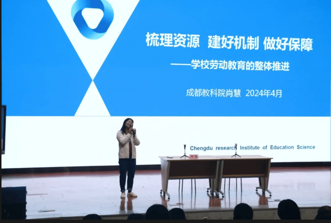 由德阳市教育科学研究院主办,旌阳区教育科学研究与教育培训中心承办的“2024春期德阳市劳动教育学校实施方案设计暨百名种子教师能力提升培训”活动在德阳市实验小学校举行。成都市教育科学研究院劳动和综合实践活动教研员肖慧老师为大家带来了精彩纷呈的讲座——《梳理资源 构建机制 做好保障——学校劳动教育的整体推进》。