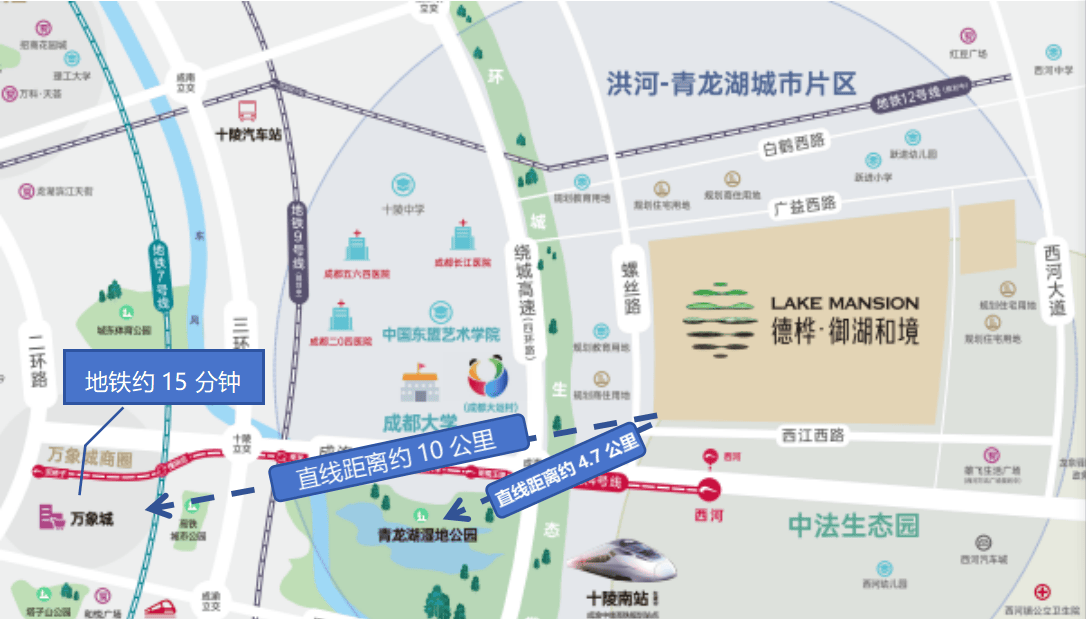 更有龙泉驿区西河小学、西河中学、成都教科院附属龙泉学校、成都大学等教育配套
