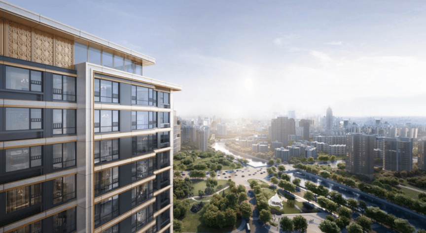 国贸虹桥璟上所在位置,拥有天然的黄金水系,围绕水资源形成的滨水河岸,加上代建公共绿地,给了这个项目的“总设计师”团队更多灵感。