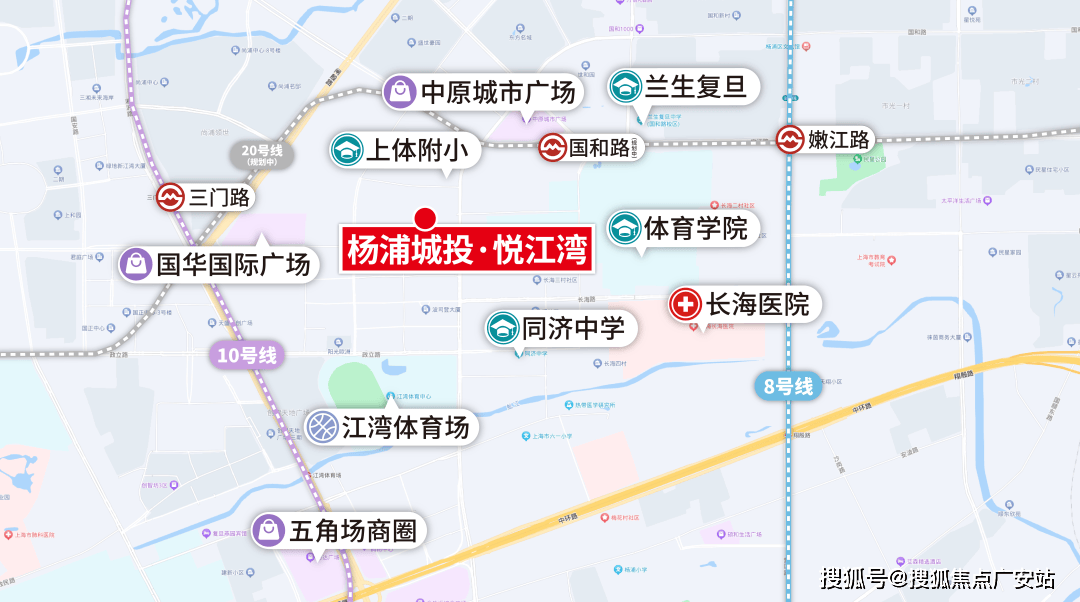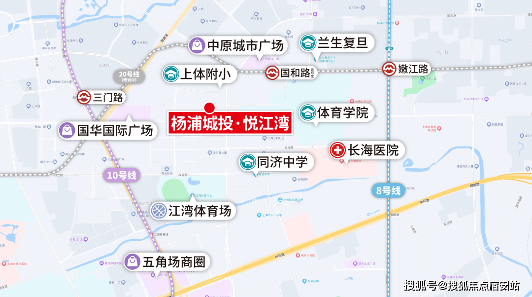 就杨浦城投·悦江湾而言,周边已有10号线号线,根据规划,未来还会增加20号线号线国和路站(规划中)直线米,轨交出行非常方便。