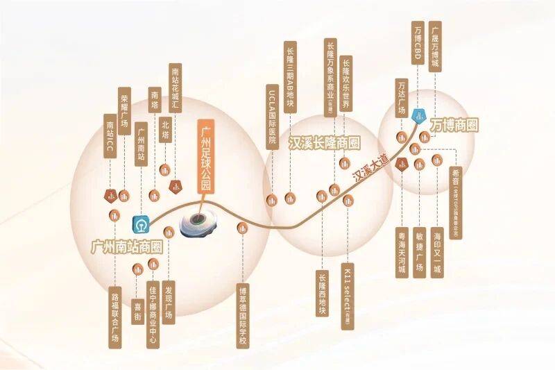 广州城投·广州足球公园的区位优势,堪称“天时地利人和”的完美结合。项目坐落于番禺汉溪大道中段,地处“长隆—万博—广州南站”黄金三角腹地,是广州南部最具发展潜力的城市增长极之一。