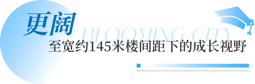 采用围合式楼栋布局,南北至宽约140米楼间距,东西至宽约145米楼间距,充分保障每栋楼每户的景观视野, “看得见的成长地标”,无形中为孩子种下对未来的向往。
