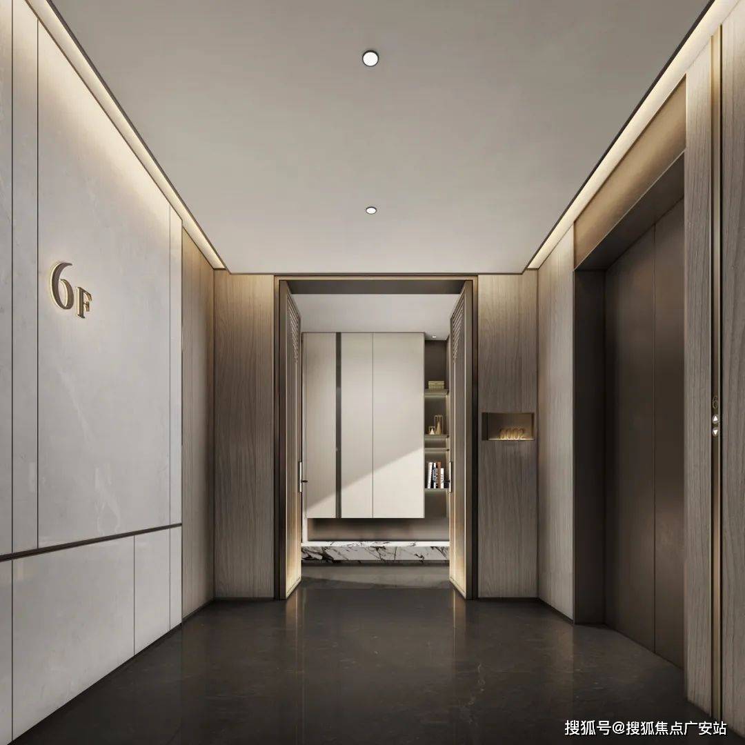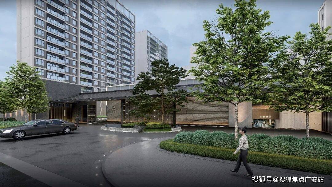 小区主入口借鉴五星级酒店的同款环岛落客区,长约40米、高约4-6米的归家大门,高级质感的金属、温润石材、艺术水景、下沉式卡座、双入户大堂,共同营造精致归家体验。