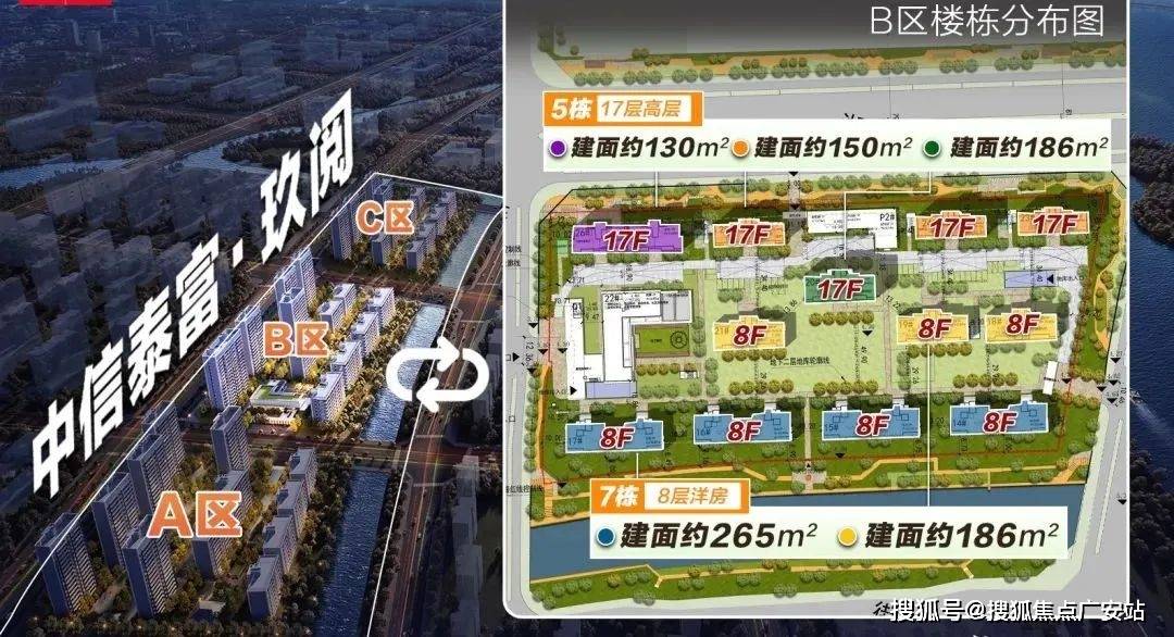 项目最先亮相B地块,整个地块围绕中心花园布局,打造7栋8层洋房、5栋17层小高层及1座高端会所,整体309套房。其中洋房建面约186、265㎡,小高层建面约130、150、186㎡。